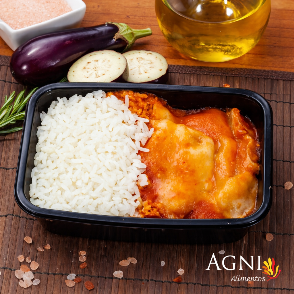 BERINGELA À PARMEGIANA C/ ARROZ